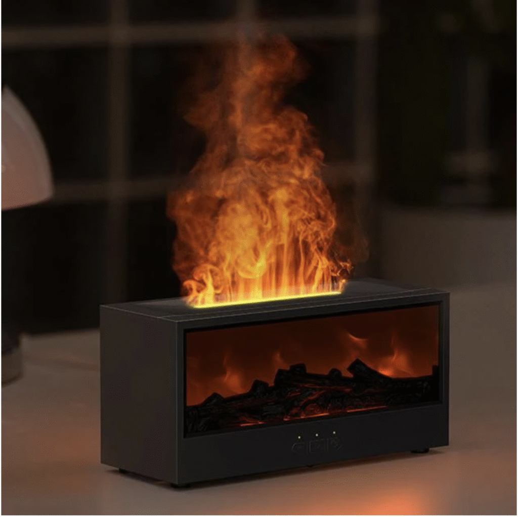 This desktop aromatherapy humidifier adds warmth, style, and comfort to your space with this beautiful flame-effect humidifier. It looks like a mini fireplace and fills your room with gentle mist and relaxing fragrance.