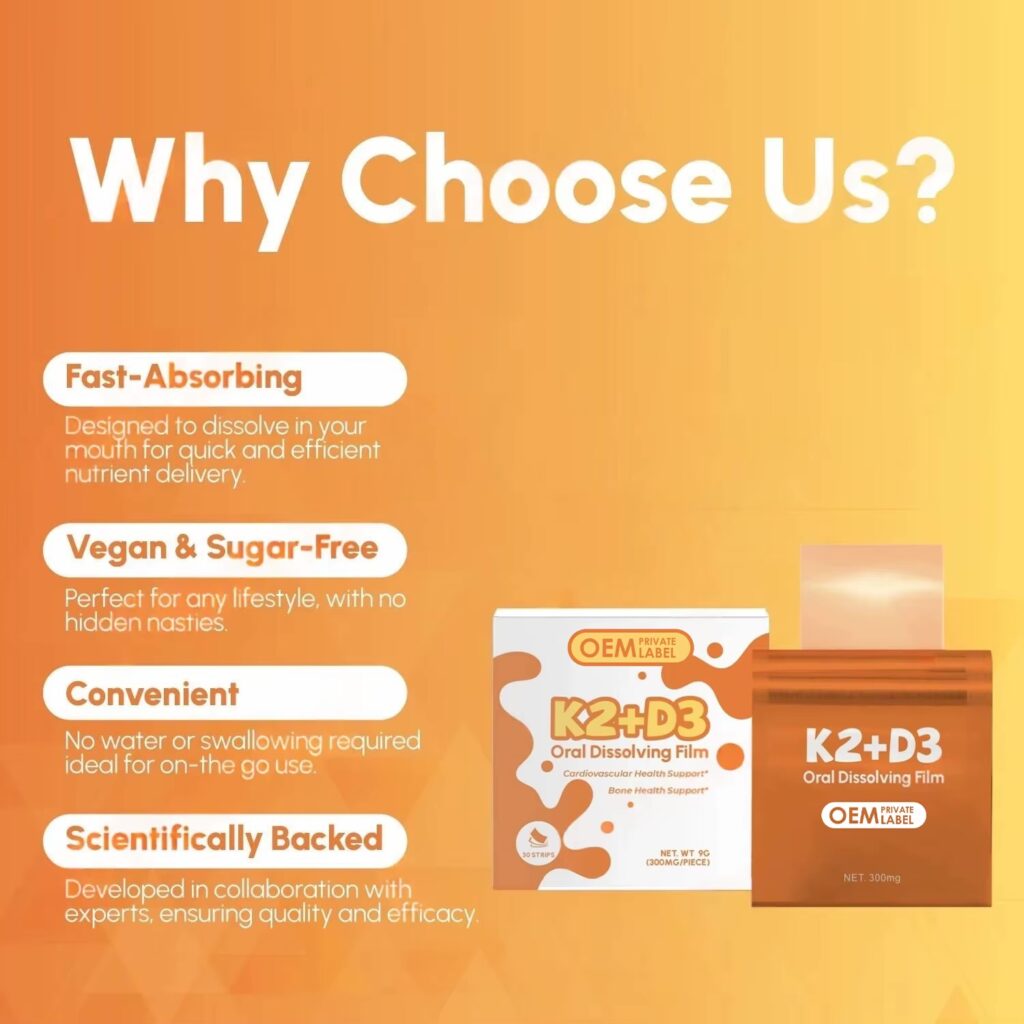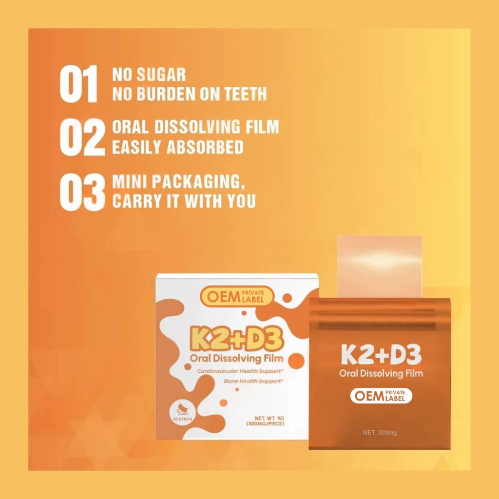 ☀️ K2+D3 Oral Dissolving Film supports bone strength, heart health, and calcium absorption—fast-dissolving, convenient, and effective for daily wellness and stronger, healthier living 💪✨
