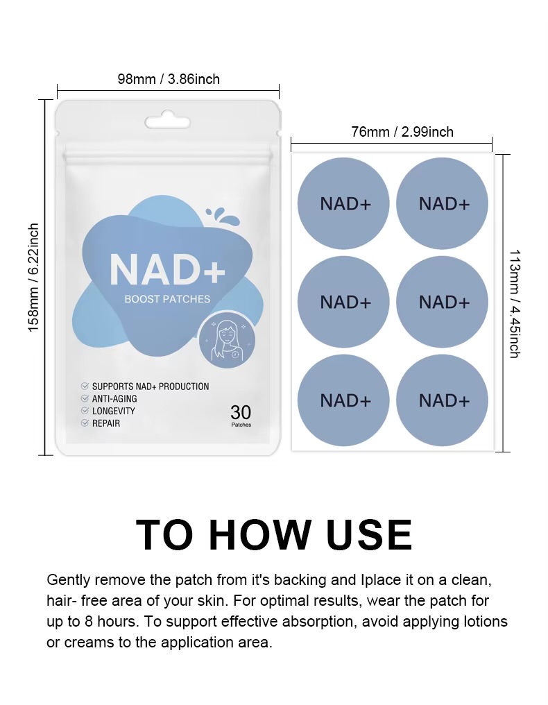 β‘ NAD+ Patches deliver sustained energy, boost cellular repair, support metabolism, enhance focus, and promote anti-aging benefits for improved vitality and overall daily performance.